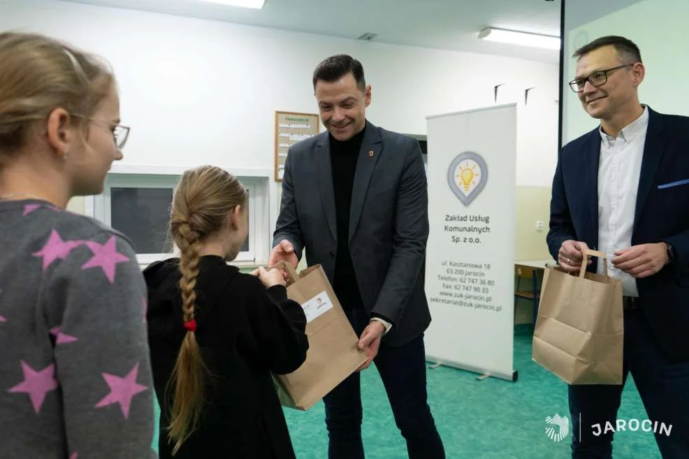 Uczniom wręczali je wiceburmistrz Bartosz Walczak oraz prezes ZUK-u Marcin Leśniak w obecności dyrektora placówki Tomasza Jankowskiego i wychowawczyń klas czwartych.