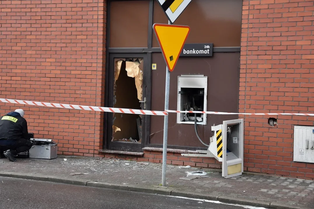 Siła wybuchu była tak duża, że wyrwała bankomat ze ściany i uszkodziła elewację budynku. Złodzieje zabrali pieniądze i uciekli.