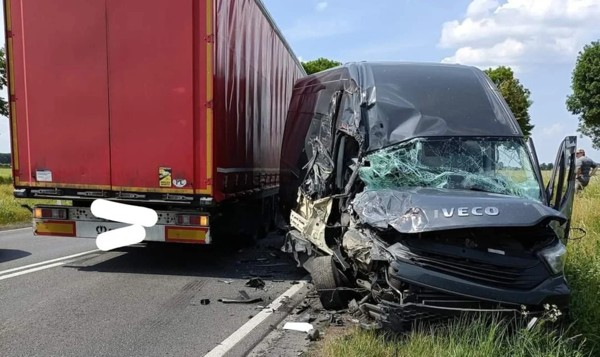 - Kierujący dostawczym iveco, najprawdopodobniej w wyniku zaśnięcia za kierownicą, przejechał na przeciwległy pas jezdni i zderzył się z fiatem ducato. Następnie iveco uderzyło w bok zestawu ciężarowego - informuje oficer dyżurny Komendy Powiatowej Policji w Środzie Wlkp.