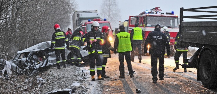 Przejeżdżający kierowcy informują, że doszło do zderzenia audi z ciężarowym volvo. Z tira wypadły na jezdnie butle z gazem. Na drodze panują bardzo trudne warunki. - Jezdnia jest śliska - skarży się jeden z kierowców.