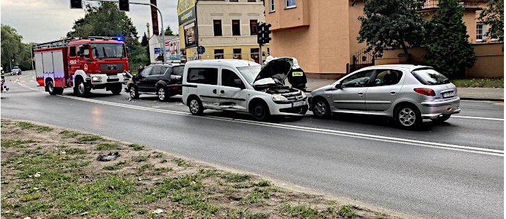 Służby ratunkowe pracują na skrzyżowaniu ul. Św. Ducha i Poznańskiej w Jarocinie. Tam zderzyły się cztery pojazdy.