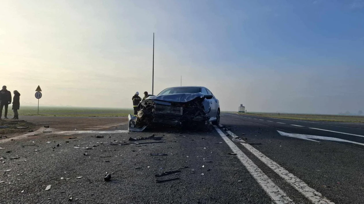 Zderzenie dwóch aut osobowych w Jaraczewie na skrzyżowaniu DK 12 z drogą do Łukaszewa