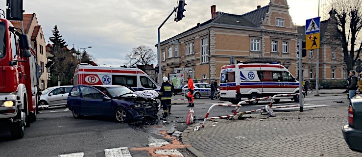 Zderzenie dwóch pojazdów na skrzyżowaniu. Auto staranowało barierki