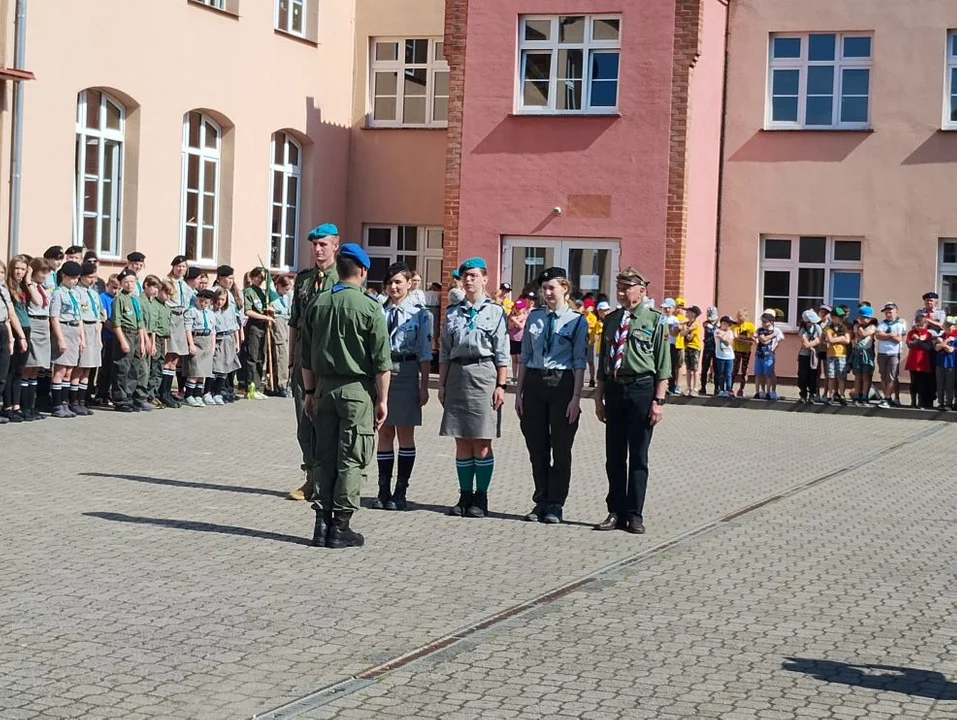 Odznaczenia i krzyże na uroczystym apelu harcerskim w Jaraczewie