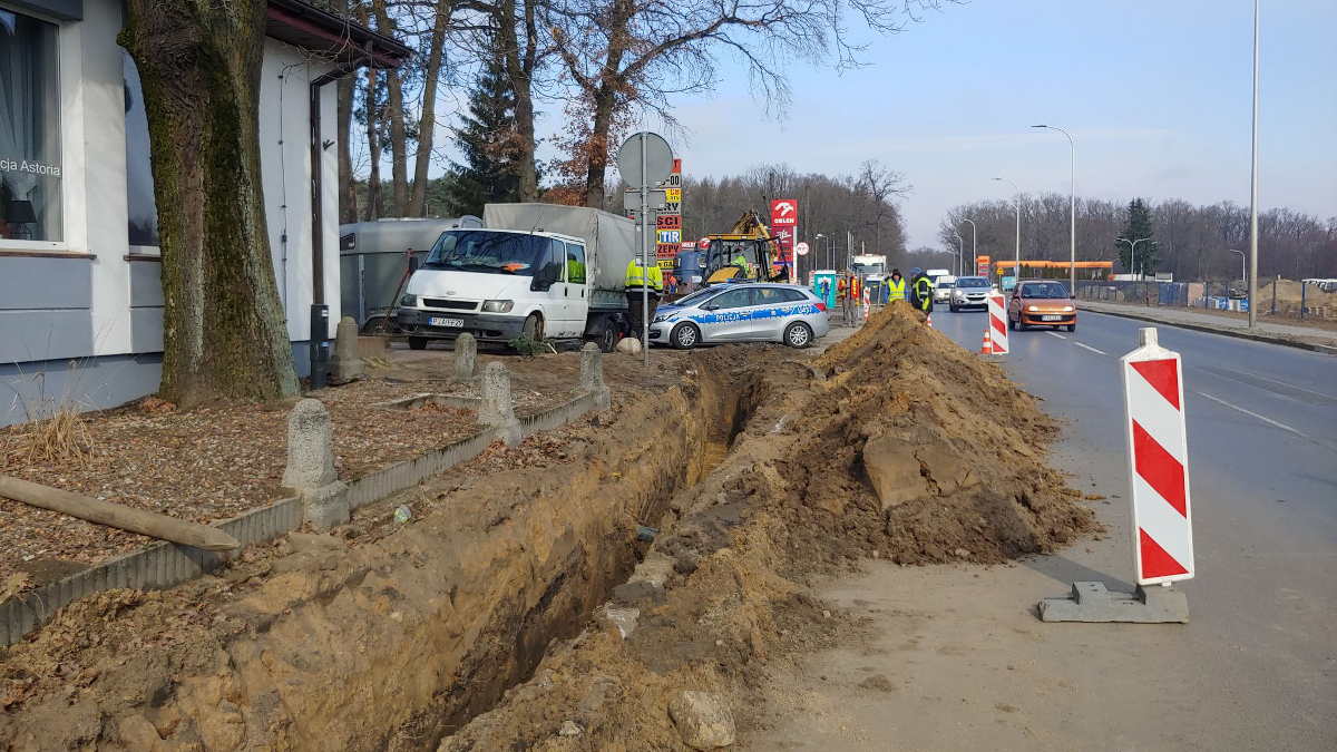 Podczas robót natknięto się na coś. Policja otrzymała informację na ten temat. Patrol udał się na miejsce zdarzenia. Dyżurny jarocińskiej policji nie ma jeszcze informacji, co odkryto w czasie realizacji inwestycji. Niewykluczone, że to może być niewybuch.