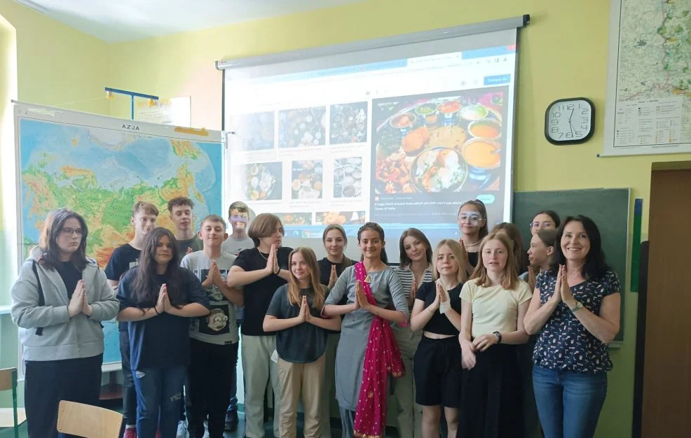 Klasa 8c miała możliwość wyruszyć w ciekawą podróż do Indii, nie opuszczając szkolnej klasy. W jaki sposób? A to za sprawą Ridham - uczennicy SP nr 2. Dziewczynka poprowadziła lekcję dla starszych kolegów i koleżanek. Ubrana w tradycyjny strój ze swojego regionu, opowiedziała o tradycjach i zwyczajach swojego kraju, zaprezentowała pendżabijski taniec bhangra, a na koniec poczęstowała młodzież daniami z kuchni indyjskiej.